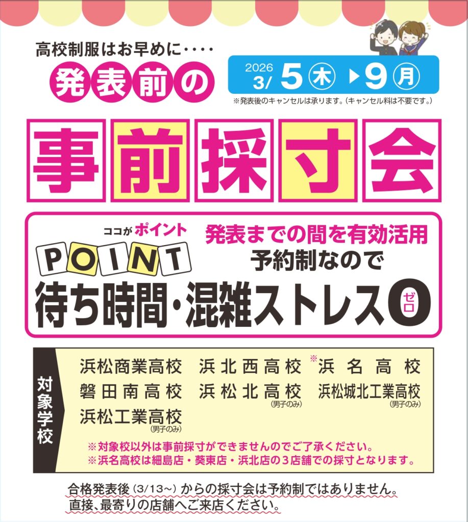 合格発表後は、大変混雑しますので是非事前採寸をご活用ください