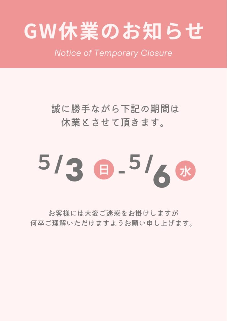 GW休業のお知らせ